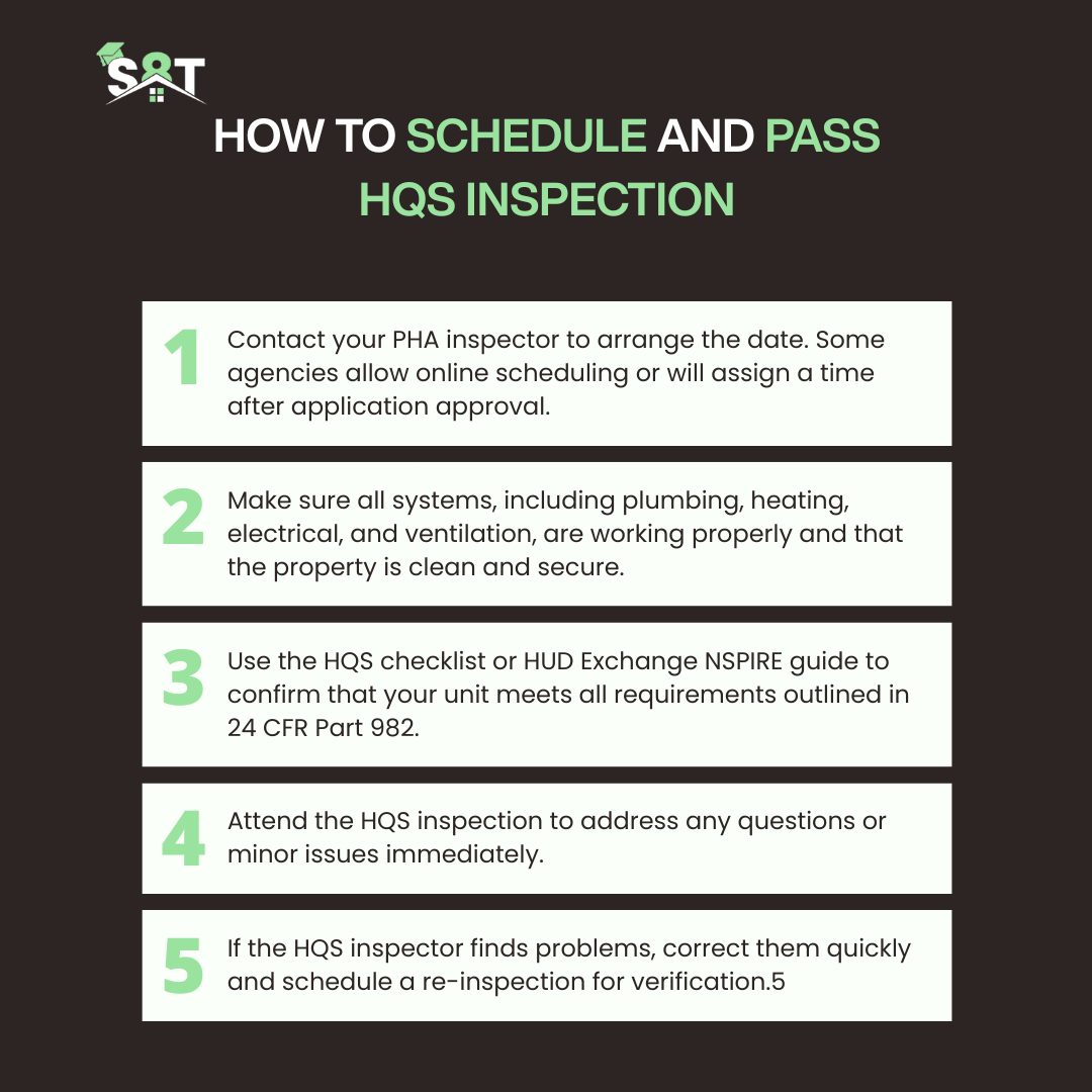 You can follow these 5 steps to schedule and pass the HQS inspection: