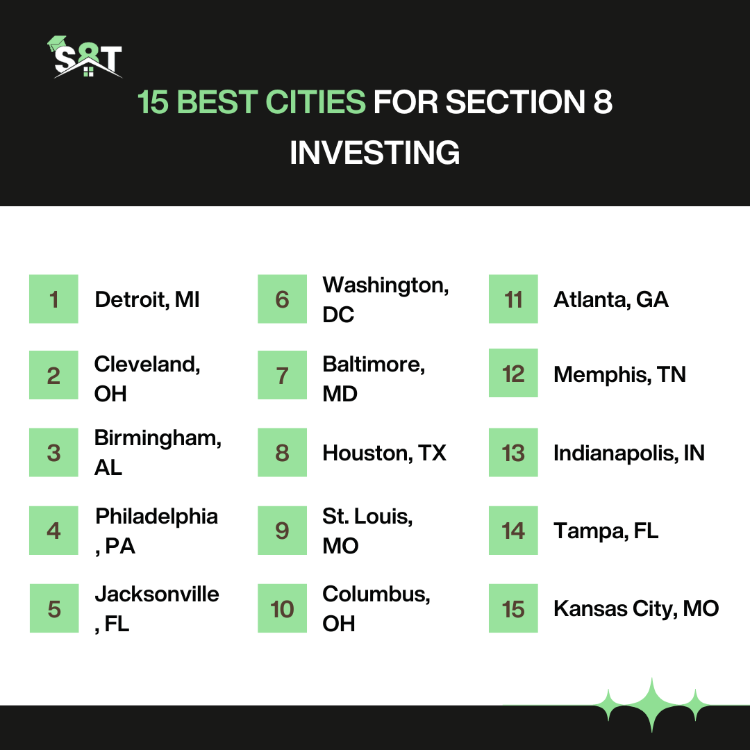 The 15 best cities for Section 8 investment are: